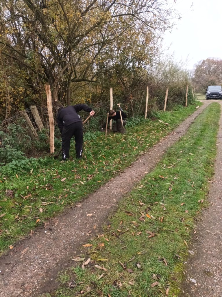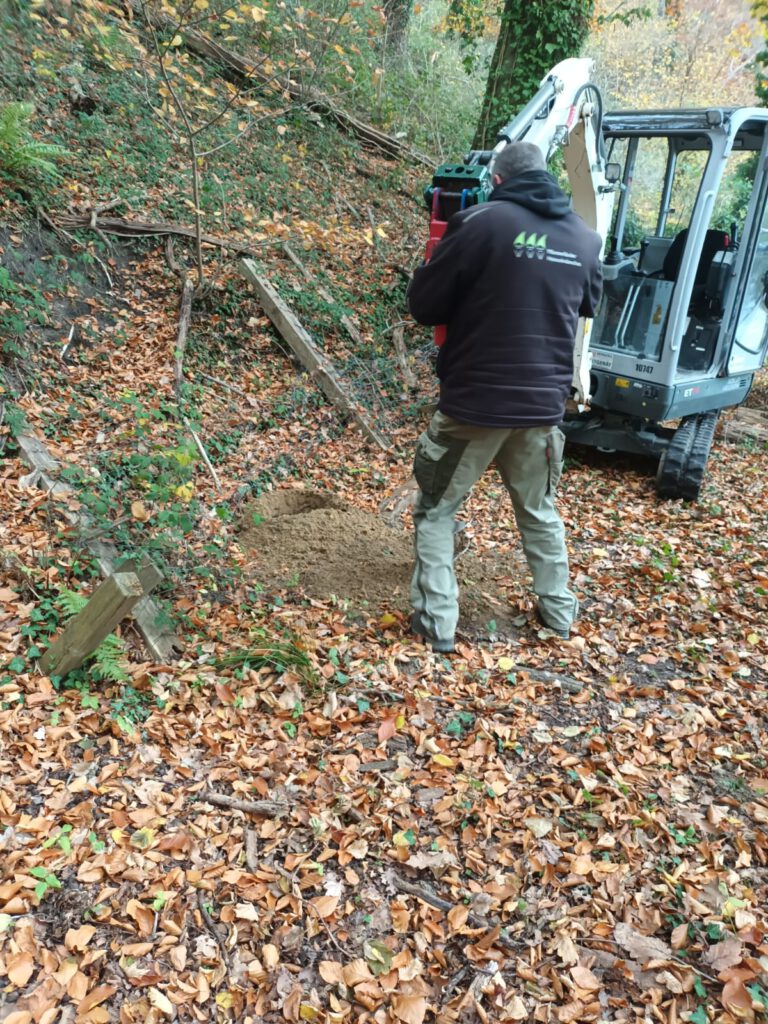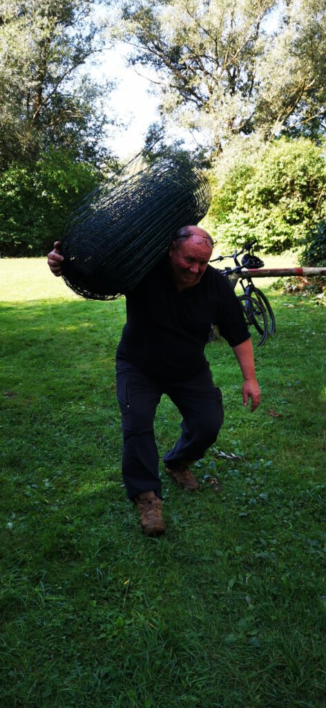 bei dem Sondereinsatz wurde mit einem größeren Bagger, die im Vorfeld gefällten Pappeln, die bereits im letzten Jahr angelegte Naturhecke erweitert. Diese ersetzt den defekten Zaun im Gelände. Auf der entstanden Freifläche wurden auch einige Hecken angelegt, so das hier neuer Lebensraum für verschiedene Tierarten entstehen kann. Für das leibliche Wohl hat Ralf Wittler wieder gesorgt.