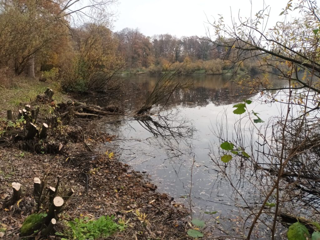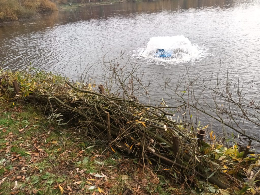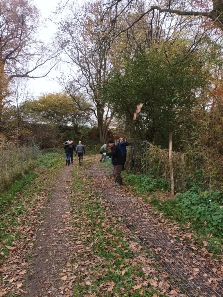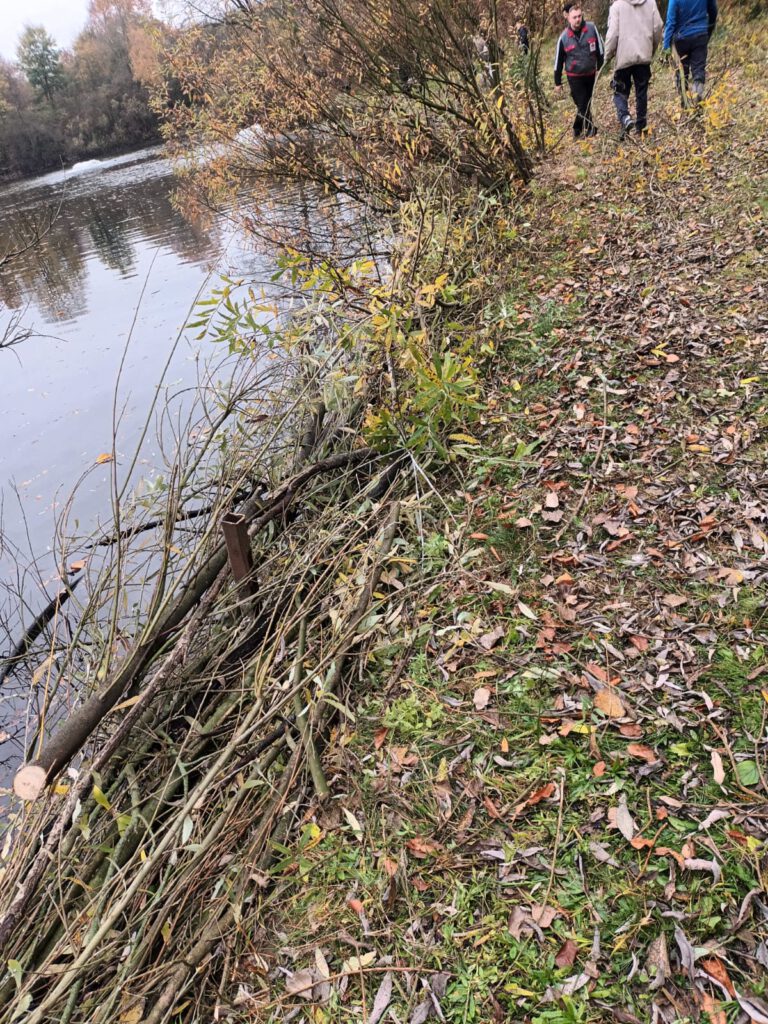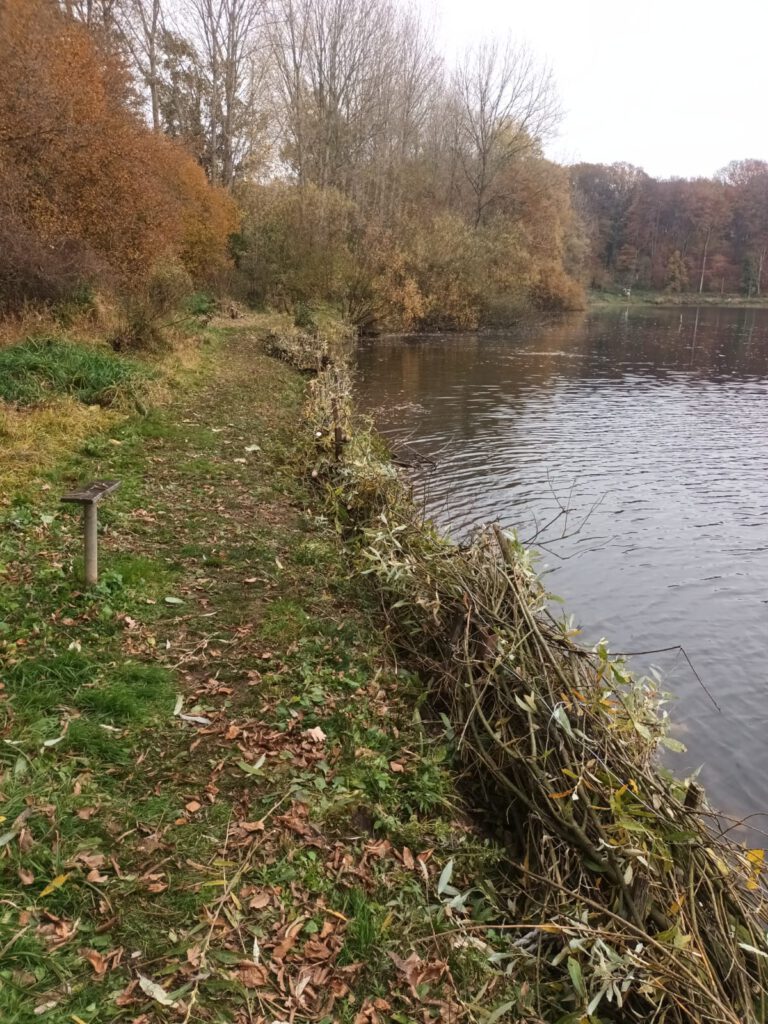 Beim letzten Räumdienst in diesem Jahr waren 42 Mitglieder anwesend. Eine kleine Gruppe blieb am Vereinshaus und hat dort alles in Schuss gebracht. Eine weitere Gruppe ist zum Gittruper See gefahren, wo die Boote vom Wasser genommen, gereinigt und anschließend eingelagert wurden. Alle übrigen Mitglieder sind zum Theresien See gefahren, dort wurde an der Zuwegung zum Hobeling-Arm ein neuer Zaun gesetzt. Am kleinen Tor wurden aus zeitlichen Gründen erstmal nur die Pfähle gesetzt. Für das Bohren der Löcher wurde ein Bagger mit Bohr-Werk eingesetzt. An einem Teil wurde das Ufer mit gebundenen Weiden befestigt, zum einen damit dies nicht weiter ausgespült wird. Bei normalen Wasser stand im Frühjahr bietet die Befestigung auch noch Schutz für die Brut.