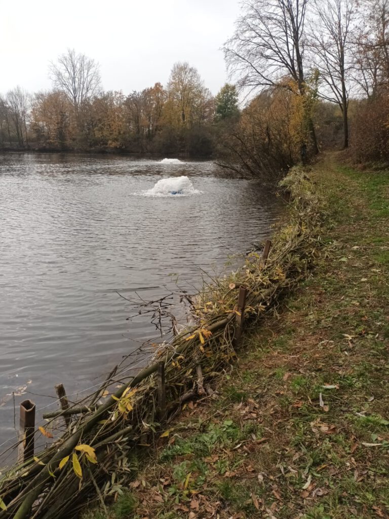 Mit 8 Mitgliedern und 5 Personen vom Vorstand wurden am See die Wege freigeschnitten eine Schwimminsel, die im Nachgang noch bepflanzt werden soll, auf den See gebracht und verankert. Außerdem wurden Nistkästen für Meisen und Fledermausnistkästen aufgehängt.
