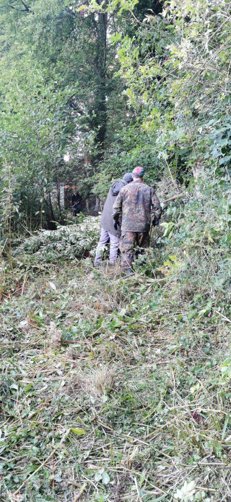 Trotz der Sommerferien kamen 16 Mitglieder zum Räumdienst, mit ihnen sind wir zum Theresien See gefahren. Hier wurden alle Zufahrten und Wege geschnitten. Die Zufahrt zum Parkplatz am Hobeling-Arm lag dabei im Fokus. Hier wurde großzügig zurück geschnitten, da im Anschluss ein neuer Zaun aufgestellt werden muss.