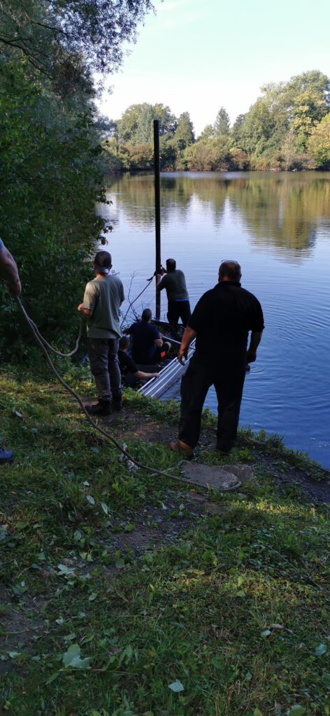 Mit einigen freiwilligen wurde am Samstag das Grundgerüst der neuen Schwimminsel angefertigt. Diese soll noch bepflanzt werden und anschließend im See platziert und verankert werden.